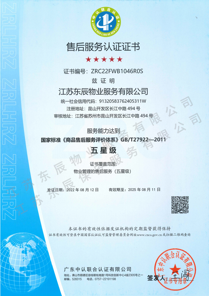 • 2022-2025年售后服務認證證書